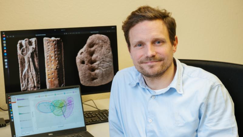 Mehr als 3.000 geometrische Zeichen auf rund 260 Objekten hat das Team mit Computermethoden analysiert. Dabei ging es nicht darum, die konkrete Bedeutung der Zeichen zu entschlüsseln. Diese liegt weiter im Dunkeln. „Theorien hierüber gibt es reichlich. Aber über die grundlegenden, messbaren Eigenschaften der Zeichen war bislang sehr wenig bekannt“, sagt Bentz. Er erforscht, was man handfest über die Zeichen aussagen kann: messbare Merkmale und Häufigkeitsmuster, um Ähnlichkeiten und Unterschiede zu späteren Zeichensystemen festzustellen. Der Sprachforscher ist auf der Suche nach der statistischen DNA der Zeichensequenzen.