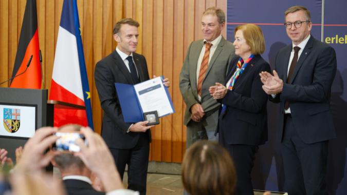 Festakt am 3. Oktober Emmanuel Macron erhielt Ehrendoktorwürde der Saar-Universität Der französische Staatspräsident Emmanuel Macron erhielt in Anerkennung seiner herausragenden Verdienste um die europäische Hochschulbildung und Wissenschaftskooperation die Ehrendoktorwürde der Fakultät für Empirische Humanwissenschaften und Wirtschaftswissenschaft (Fakultät HW) der Universität des Saarlandes. Verliehen wurde die Ehrendoktorwürde im Rahmen der Feierlichkeiten zum Tag der Deutschen Einheit am 3. Oktober in Saarbrücken.